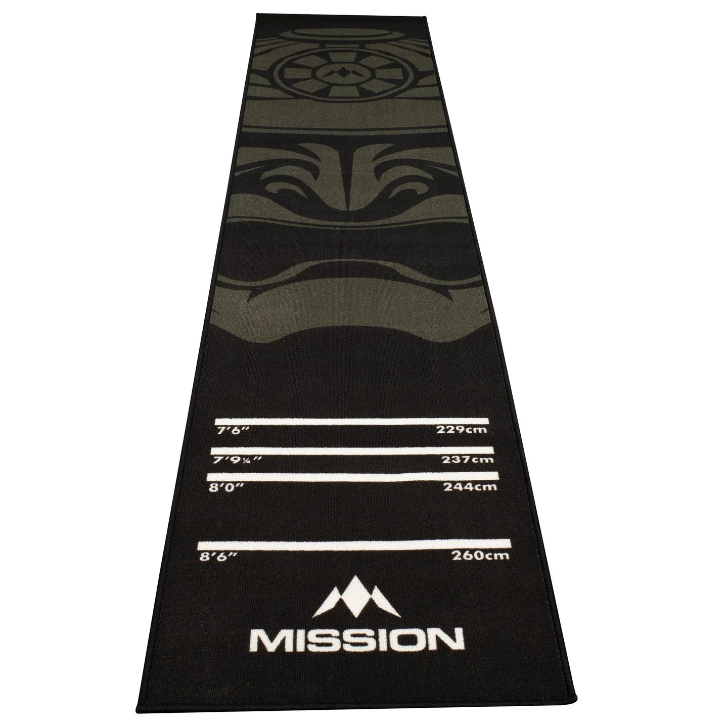 Featuring an eye-catching Samurai design and the Mission logo, this carpet mat displays the official tournament oche measurements for both steel tip and soft tip darts.