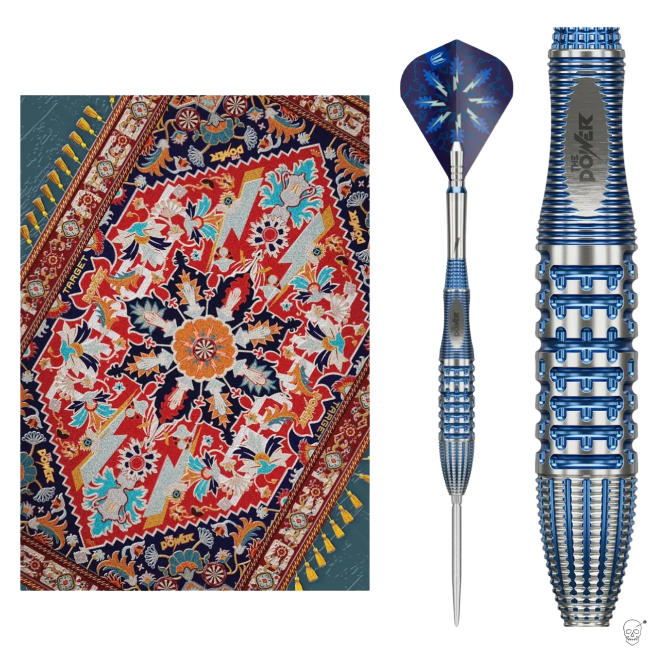 Crafted from 95% tungsten, the barrel features a classic torpedo shape with a front-weighted balance for a smooth, controlled release. The Quattro grip combines CNC-machining with milled square cuts, creating a unique texture overlaid with an electric blue titanium nitride coating—a finish as striking as Phil’s legacy.