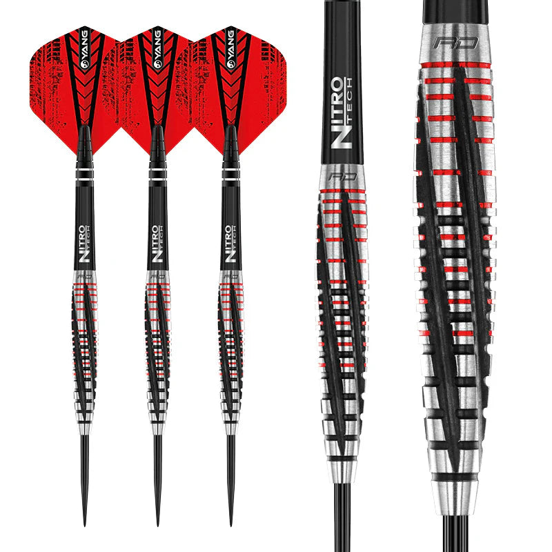 Rifle darts tapered profile and evolution spin-control grooves help create pure spin and style angular momentum release for the purest flight. The fingers “sit” within precision edges creating torque to spin the dart on the axis of the throw. Greater optimal linear momentum delivers precise symmetric dynamics.