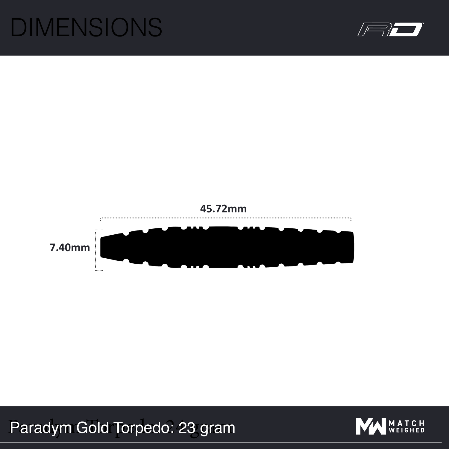 Red Dragon - Paradym Gold Torpedo - 90% Tungsten Darts - 23g is backordered and will ship as soon as it is back in stock.