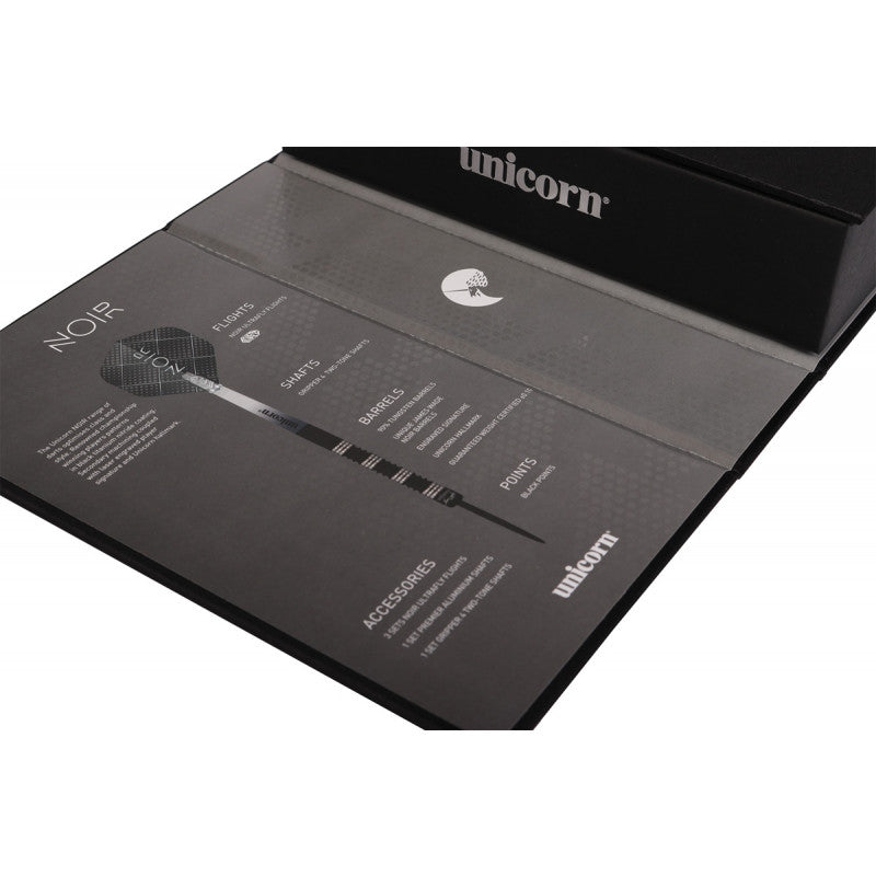 The Unicorn Noir range of darts epitomizes class and style. Renowned championship winning players patterns in black titanium nitride coating. Secondary machining coupled with laser engraved player signature and Unicorn hallmark.
