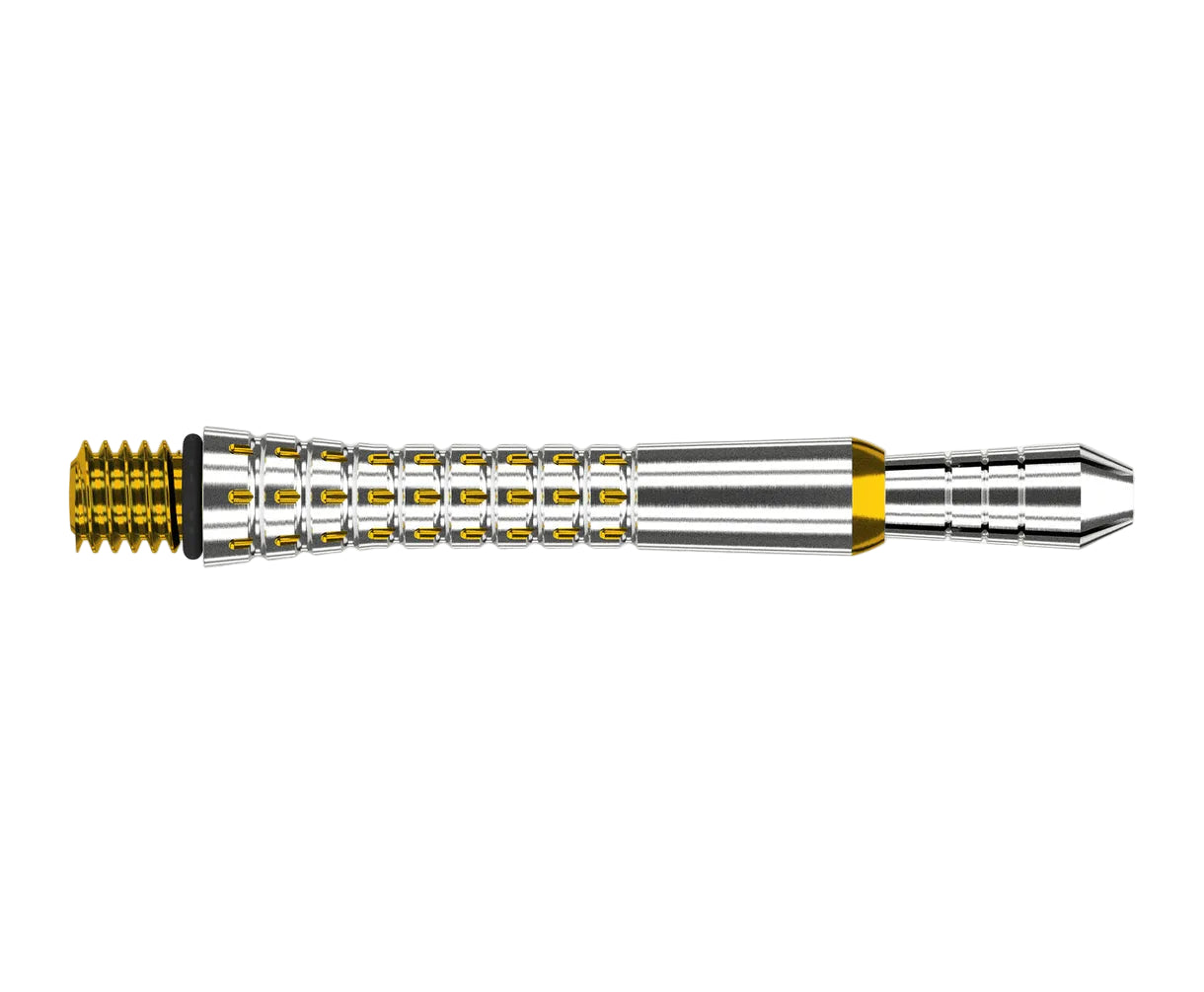The Pixel Grip Titanium Shaft is a version of the Grip Style shaft utilising Target's unique Pixel Grip to offer a new grip zone for players. Adding Pixel Grip to the shafts gives added reassurance and new options to holding your darts. The Pixel shafts are coated in a coloured Titanium Nitride giving both protection and style! The Pixel Titanium Shaft grips the flight tighter as the top in screwed in, the design also allows the aluminium tops to be replaced quickly and conveniently if you need to change flights mid game.