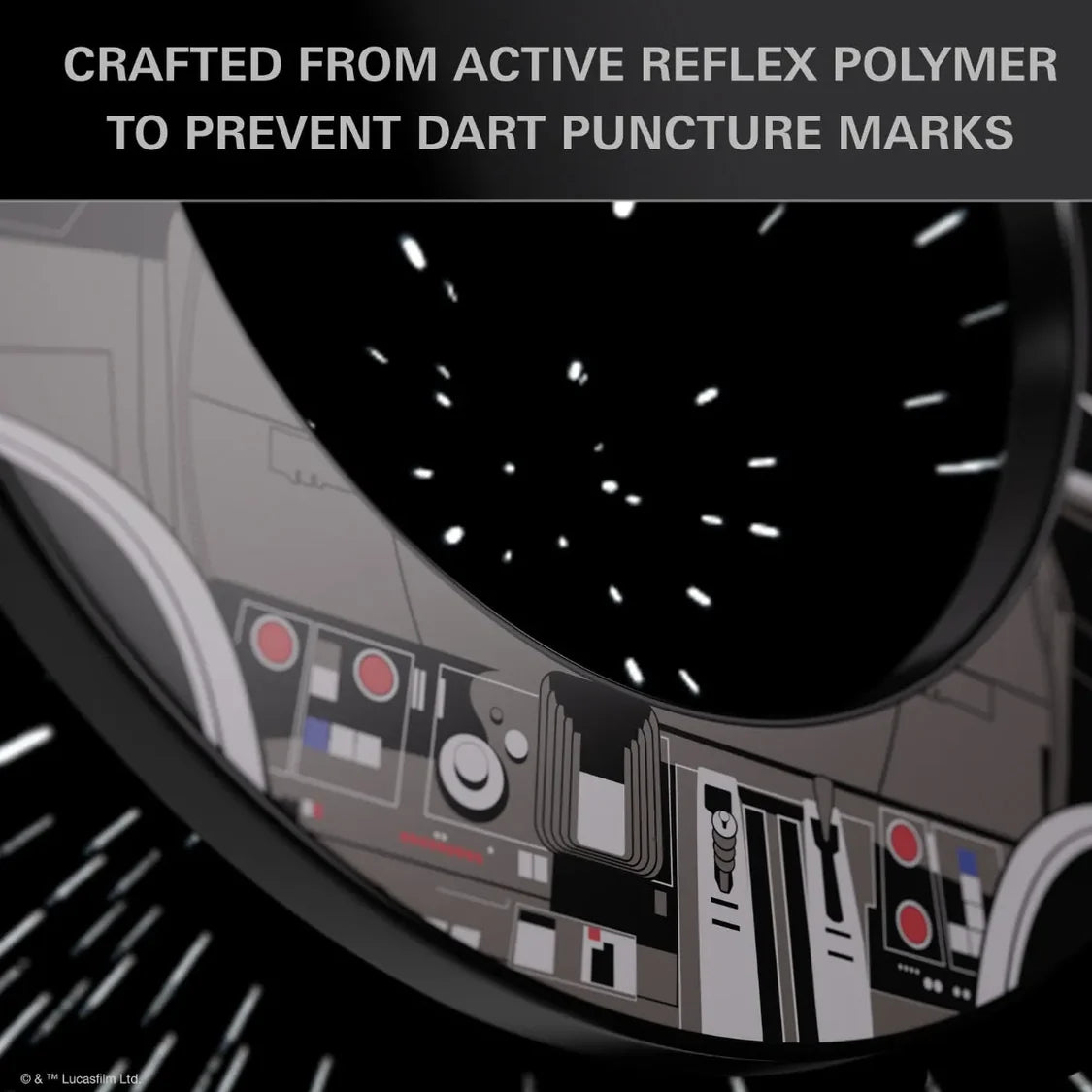 Inspired by the Falcon’s legendary cockpit, the themed surround is constructed from high-density polymer with a ribbed back profile that provides active reflex protection for walls and darts. Designed for a perfect fit around the TOR dartboard, it requires no wall fixings — offering easy installation and a striking finish worthy of any Star Wars fan’s setup.