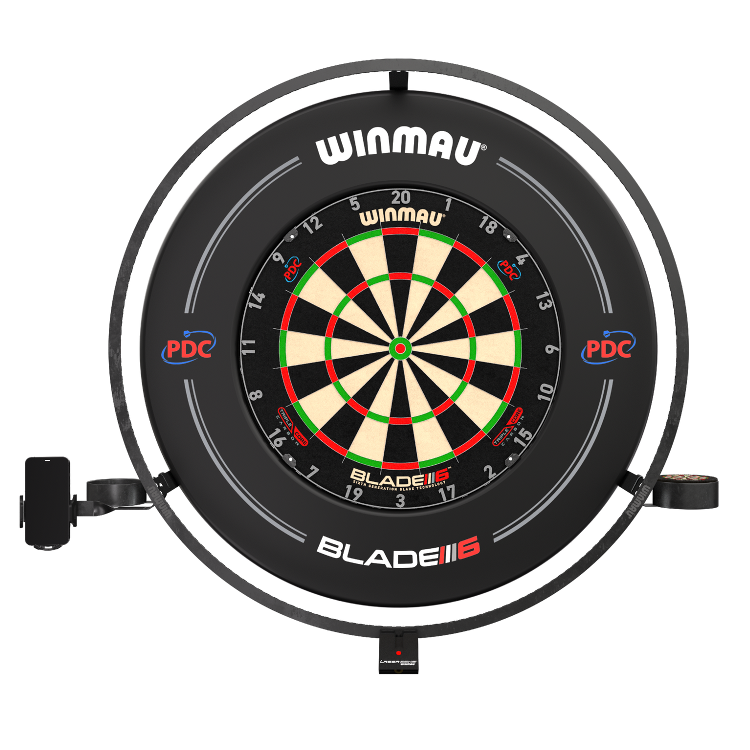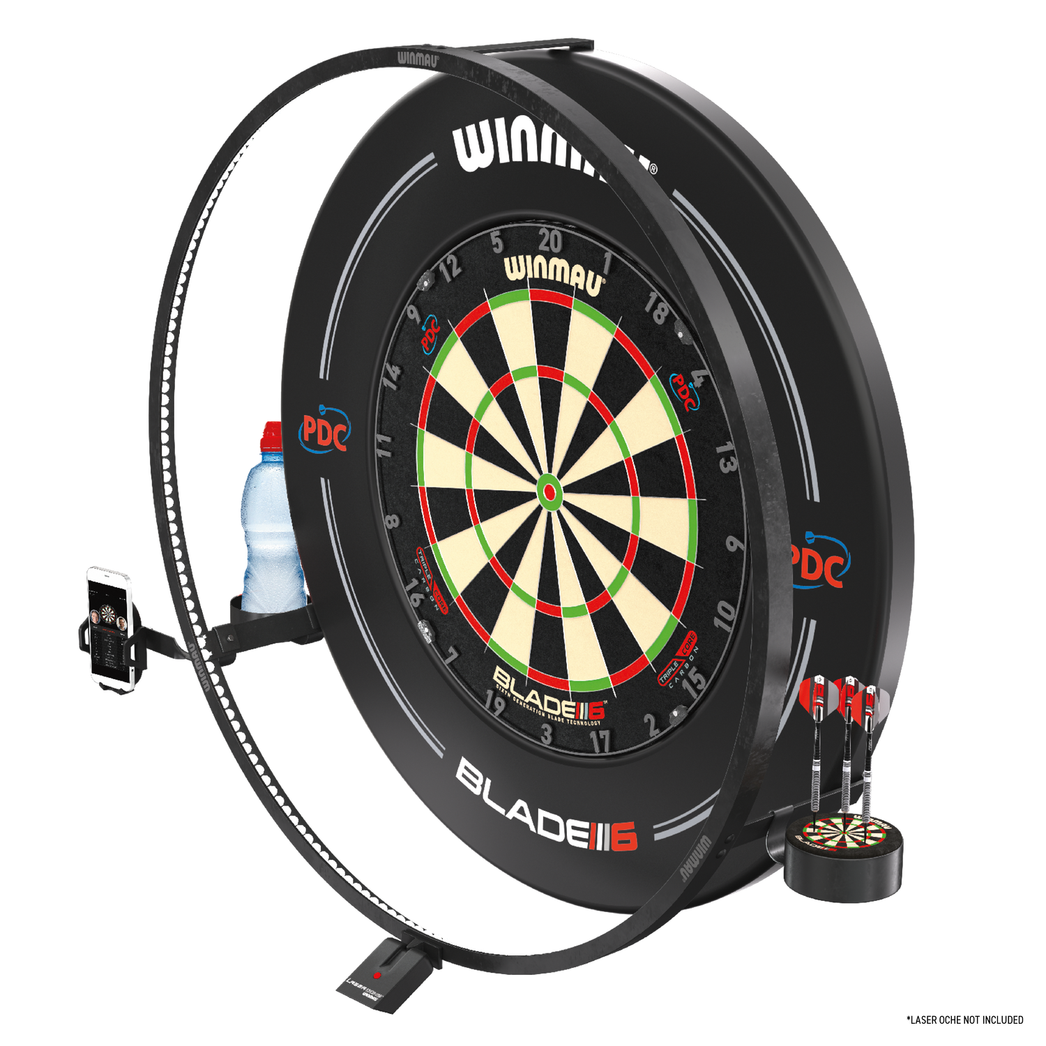 IMPORTANT NOTE:  This product requires a Winmau Plasma Light available separately and the displayed Laser oche, darts, phone & drinks bottle are NOT included with this product and are for illustration of the respective product holders only.